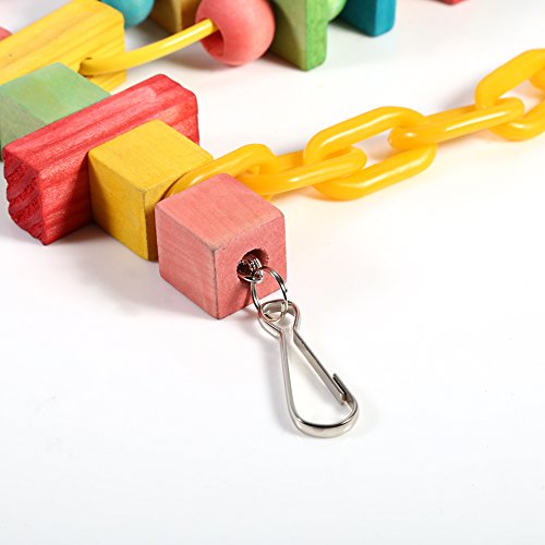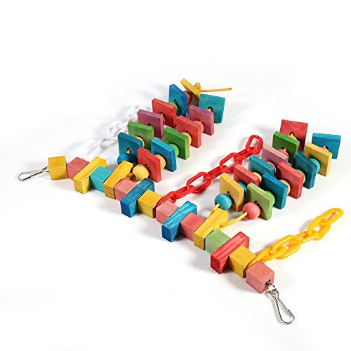 【Giocattoli multicolore per uccelli】 Le colorate perline arcobaleno e blocchi di legno presenti nel design di questi super divertenti giocattoli in legno intrigano e ingaggiano il pappagallo per incoraggiare il comportamento istintivo del foraggiamento, aumentando e aumentando così il tempo di gioco!
