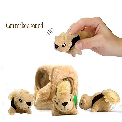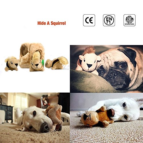 Include interessanti: questo peluche giocattoli del cane da 3 Squeaky scoiattoli e 1 Plush Tree Trunk per nascondere e cercare Play pattern che Dogs Love molto, ogni scoiattolo resistente ha una funzione vocale
