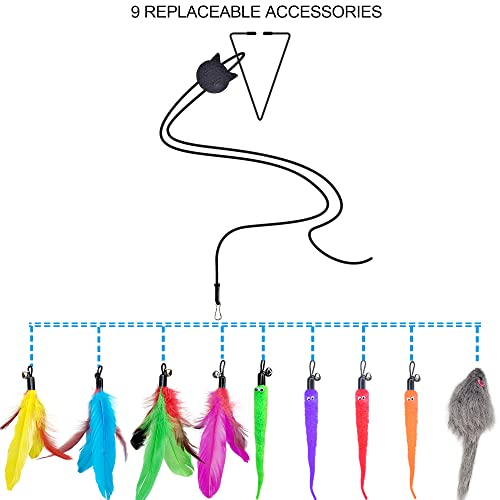 Set di giocattoli interattivi per gatti tutto in uno: Include due coinvolgenti giochi a bacchetta, un versatile gioco a corda e una serie di accessori per piume, insetti e topi per infinite possibilità di gioco.