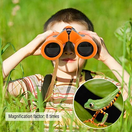 Mini 8x21 Giocattolo per telescopio binoculare per Bambini, Materiale in Gomma + Metallo Giocattolo per Bambini Portatile Binocolo per Regalo Helloween di Natale(Arancia)