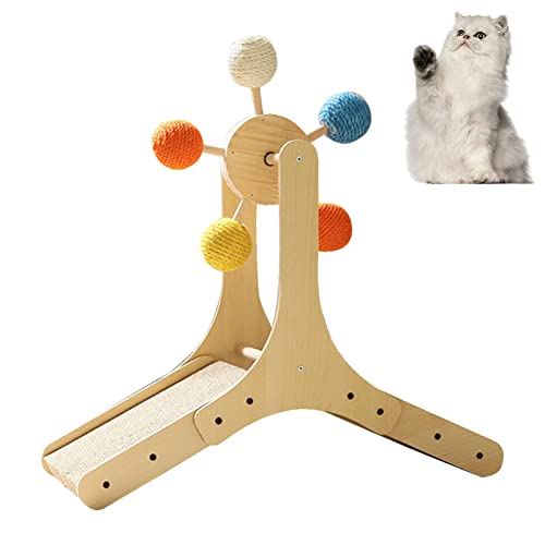 Giocattolo tiragraffi per gatti - Palla da afferrare per gatti in sisal naturale con base tiragraffi per gatti,Tiragraffi interattivo con supporto in legno massello Giocattolo anti nervoso Ulapithi