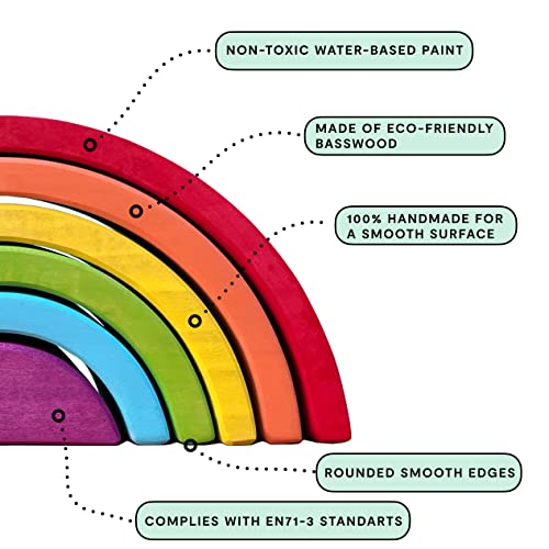 Il giocattolo arcobaleno da 6 pezzi è un giocattolo divertente ed educativo per bambini in legno di tiglio naturale.
