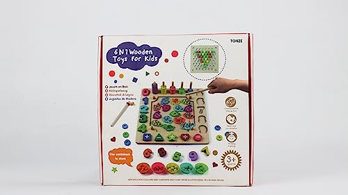 Giochi Bambini 3 4 5 6 Anni 6 in 1 Puzzle di Legno Gioco Pesca Bambini Giocattoli Clip Perline Giochi Interattivi Motricità Fine Giochi Montessori in Legno Puzzle 3 4 5 6 Anni Regalo Bambino