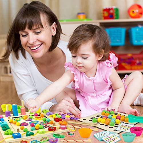 Giochi educativi Montessori: I bambini possono imparare giocando, i giochi puzzle ai bambini di esercitare le loro capacità di presa, la coordinazione occhio-mano, la concentrazione e il riconoscimento di colori/forme/numeri quando tengono in mano perline, giocano a pescare, si combinano numeri e si infilano blocchi. Il gioco da tavolo per bambini è molto adatto ai bambini dai 3 anni in su.