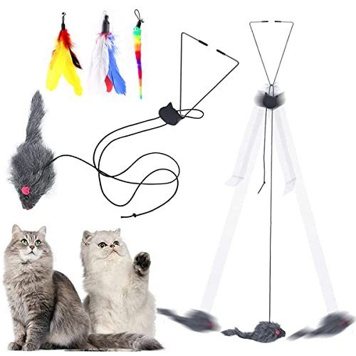 【Lunghezza regolabile】: regola il dispositivo all'altezza corretta regolando le clip. Il design della corda elastica aumenta il divertimento dei giocattoli per gatti, il topo è tirato dal gatto e vola in giro, cercando di catturare ma non riesce a far impazzire il gatto