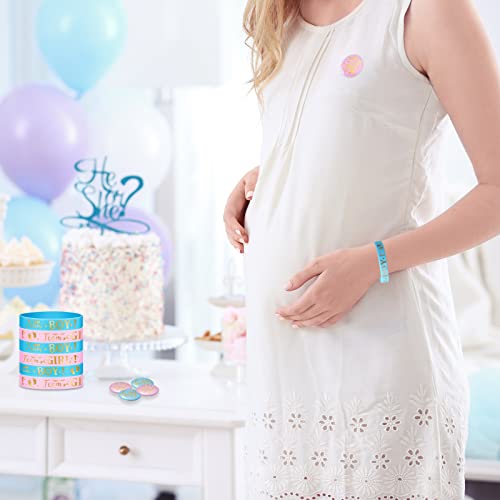 Set di 48 Giochi di Genere di Genere, Include 24 Spille Pulsanti di Genere Rivela 24 Braccialetti in Silicone Rivelazione di Genere Squadra Bambini Oro Rosa per Baby Shower (Blu, Rosa)
