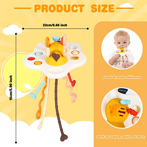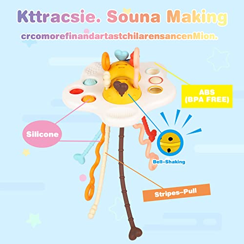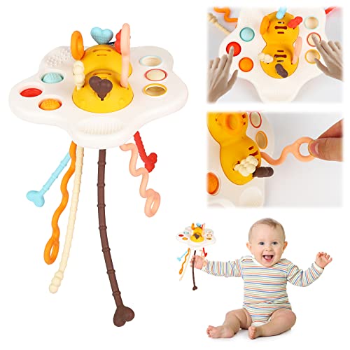 Giochi Montessori 1 Anno 4 in 1 Silicone Tirare la Corda Gioco Giochi Educativi Montessori Giocattoli da Bagno Giocattolo da Viaggio Montessori Giocattolo, per Bambino 0-6 Anni Ragazzi Ragazze
