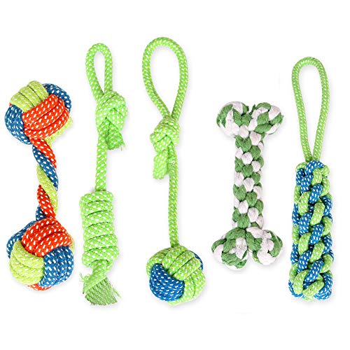Giocattolo ideale per il vostro cane: set da 7 pezzi, sicuro e di alta qualità, realizzato in 100% cotone naturale, resistente, multicolore e sano, atossico e assolutamente sicuro per il vostro animale domestico.