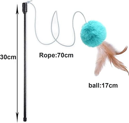 6 giocattoli per gatto: i giocattoli a forma di piuma per gatti attirano l'interesse dei gatti per cercare di mettersi in zampa, aumentando il divertimento tra voi e voi gatti. (Dimensioni: bacchetta: 40 cm, corda: 50, piuma: 45 cm, pallina: 20 cm)