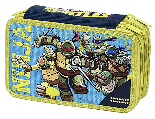 Giochi Preziosi - Tartarughe Ninja Astuccio Triplo con Colori, Pennarelli ed Accessori Scuola