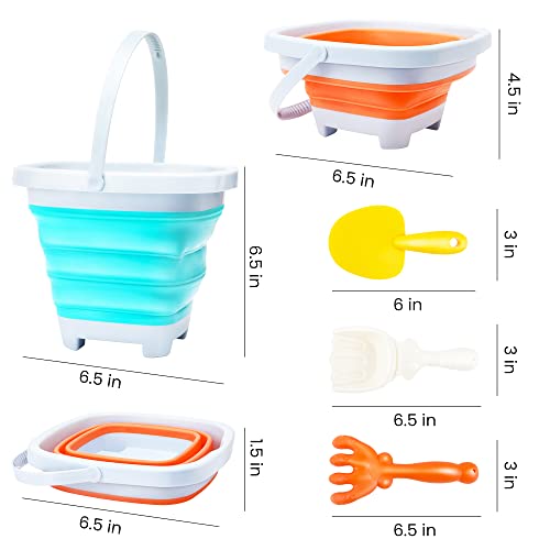 OR OR TU Giochi Spiaggia 6 Pezzi Pieghevole Portatile Secchiello Spiaggia Silicone Secchiello e Paletta Bambini Giochi mare da 3 4 5 6 7 8 anni Ragazzi Ragazze Regali di Viaggio
