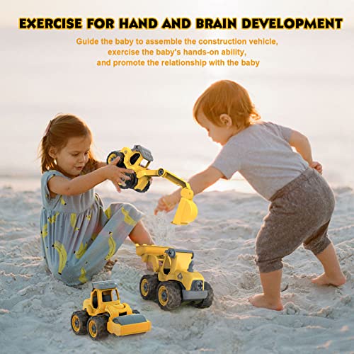 EYLM Giochi da Veicoli da Costruzione Set, 3 in 1 Viocattoli Assemblati con Trattore con Caricatore Frontale/Rullo Stradale/Escavatore, Giocattolo Educativo per Bambini di 3 4 5 6 anni