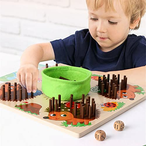 Gioco con Bastoncini di Legno, Bastoncino da Gioco da Tavolo da 12,4 Pollici, Gioco di Riccio Inserito in Legno, Gioco di Abbinamento abilità motorie Fini, Giocattoli educativi Montessori per abilità