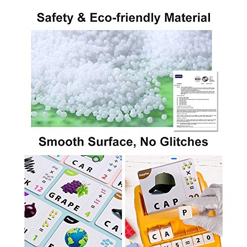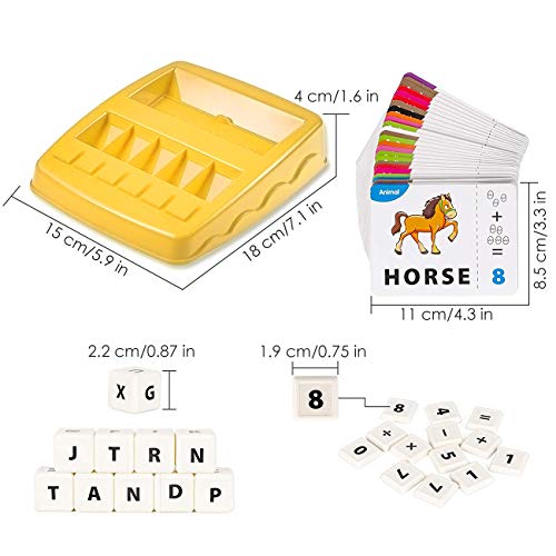 [Modelli vivaci] - Il gioco di corrispondenza delle parole viene fornito con 1 vassoio di gioco, 10 cubetti di lettere, 20 blocchi numeri, 5 blocchi di simboli matematici e 32 carte di cui 64 parole composte da 3 a 5 lettere. Queste carte di parole includono modelli vivaci come frutta, animali, colori, veicoli e parti del corpo per stimolare l'interesse dei bambini in età prescolare nell'apprendimento