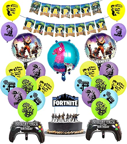 Queste decorazioni di compleanno da gioco includono 1 striscione di buon compleanno, 16 palloncini in lattice, 1 topper per torta, 3 palloncini rotondi in alluminio e 2 palloncini in alluminio da gioco.