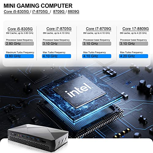 Mini PC da gioco PC desktop Core i7-8709G con grafica RX Vega M GH Mini computer desktop Windows 10 16GB DDR4 512GB SSD, 4K HD2.0 Mini DP quattro display, RJ45 LAN, WiFi6, BT5.1, ventola integrata