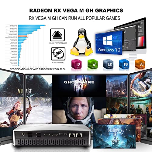 【Potente CPU e grafica Radeon RX Vega M GH】 Alimentato con CPU Core i7-8709G (fino a 4,1 Ghz) e grafica Radeon RX Vega M GH da 4 GB, questo mini PC da gioco F9 funziona in una potente workstation. Il Mini PC alimentato da GPU AMD Vega competerà contro i mini PC della scheda grafica dedicata GeForce GTX 1050 Ti. Qualsiasi ufficio che lavora o multitasking o gioco 3D può funzionare senza problemi e velocemente con il mini PC da gioco.