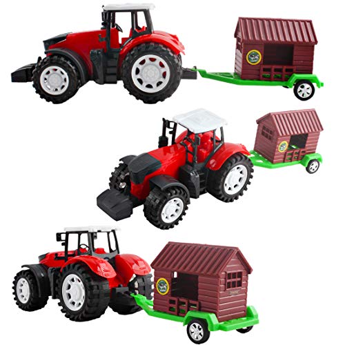 CARATTERISTICHE: Nessuna necessità di batterie! I veicoli sono spinti dall'attrito. I rimorchi e gli animali sono di misure simili per poter posizionare le figure e trasportarle da un posto all'altro come le fattorie reali.