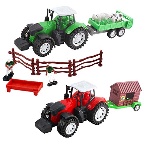 DeAO Gioco di Fattoria con Veicoli ad Attrito Set 2in1 Include Trattori, Figura del Contadino, Animali e Accessori del Ranch Agricoli