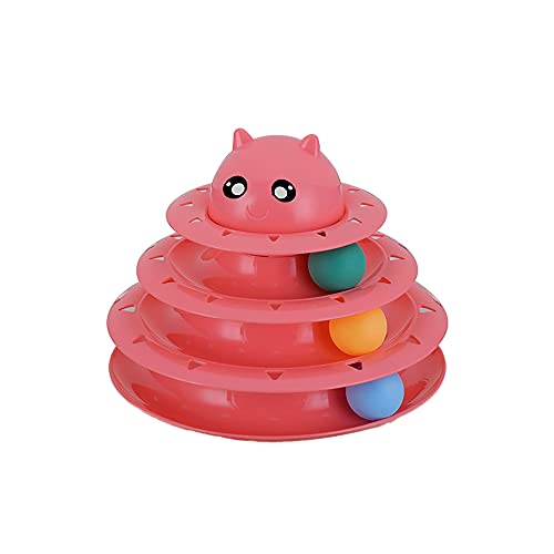 CHSG Gioco per Gatti con Palline Rotolanti, Torre con Piste A 3 Livelli, con Palline Colorate, Gioco Interattivo per Gattini, Gioco Rompicapo Esercizio Fisico E Mentale, Pet Fun Roller Ginnico (Rosa)