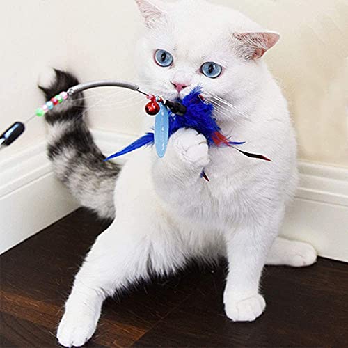 Gioco Gatto, Giocattoli Interattivo con Piume per Gatti, Giochi con Piume per Gatti con Campana, Gatto Giocattoli Interattivi Gioco per Gattino Kitten Indoor 6 Pezzi