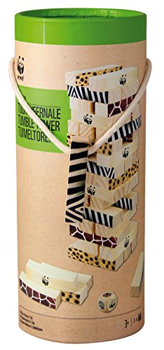 Comprende mattoncini in legno certificato FSC con stampe di animali selvaggi e un fantastico tubo contenitore facilmente trasportabile grazie alla maniglia in corda