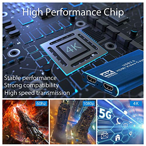 Capture Card 4K: This video capture card supports 4K@60fps 4:4:4 pass through for HDMI 2.0 input (output is 1080P), which is ideal for live broadcasting, conference rooms, video recording etc.brushed aluminium housing, no requires external power supply.The device is easy to install and carry.