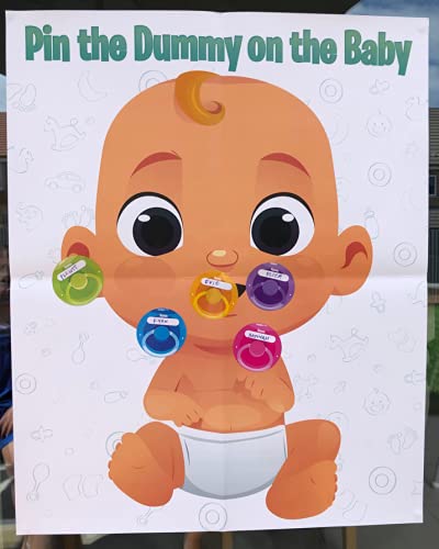 Gioco per baby shower - Pin The Dummy on the - Include 20 adesivi, poster grande e benda di lusso (opzione 1)