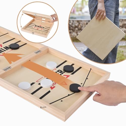 Facile da trasportare: la nostra tavola da hockey è realizzata in legno di alta qualità, antiscivolo e resistente all'usura, e la tavola pieghevole è abbastanza grande ma si piega saldamente. Facile da trasportare quando si è in giro.