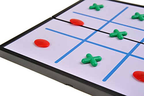 Gioco da tavolo magnetico (Versione compatta da viaggio): Tris / filetto / fila tre / crocetta e pallino / cerchi e croci - pezzi magnetici, tavoliere pieghevole, 19cm x 19cm x 1cm, SC6633 (DE)