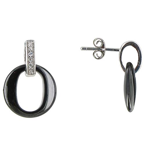 Gioello Les Poulettes - Orecchini d'Argento Rodio e Piccolo Cerchio di Ceramica - Classics - Nero