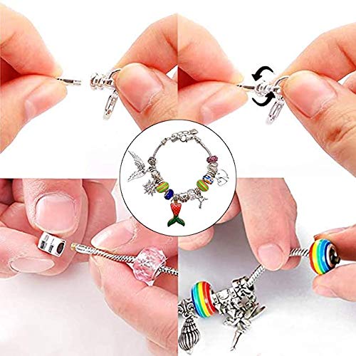 NESSUN STRUMENTO, NESSUNA COLLA, NESSUN MESSAGGIO - Questo kit per la creazione di gioielli per ragazze è molto facile da usare. Basta svitare il cappuccio terminale della catena del serpente. Dopo aver infilato i ciondoli per i braccialetti, riavvitare semplicemente il cappuccio.