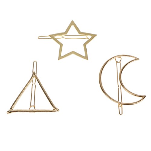 3pcs Triangle Moon Star Shape Hairpin Side Clip Hair Styling Accessories Gold