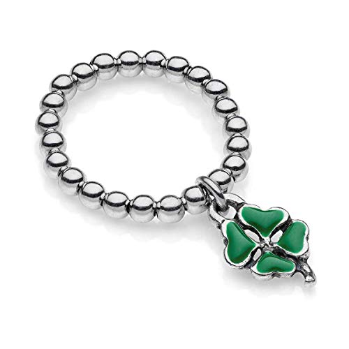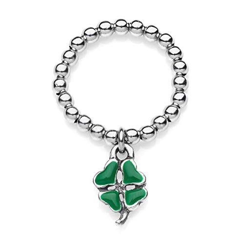 Gioielli DOP - Anello Boule Elastico con Mini Charm Quadrifoglio - Anello in argento 925 - Mini Ciondolo con smalto antigraffio - Fatto a mano in Italia - Garanzia di 2 anni