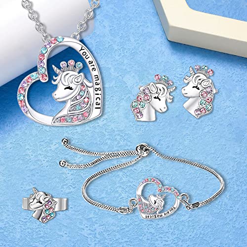 【Design Creativo】Design unicorno con cuore, l'unicorno simboleggia pace, speranza e purezza, può portarti fortuna e forza e aiutarti a superare le difficoltà. Rendi la tua ragazza elegante e accattivante con il grazioso set di gioielli per ragazze.