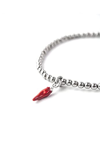 Gioielli DOP - Bracciale Boule con Mini Ciondolo Peperoncino Piccante - Bracciale e Charm in Argento 925 - Mini Ciondolo con smalto antigraffio - Fatto a mano in Italia - Garanzia di 2 anni
