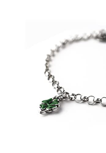Gioielli DOP - Bracciale Rolo con Mini Ciondolo Quadrifoglio - Bracciale e Charm in Argento 925 - Mini Ciondolo con smalto antigraffio - Fatto a mano in Italia - Garanzia di 2 anni