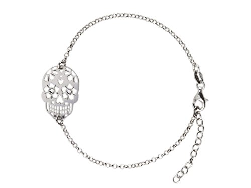 Aka Gioielli - Bracciale Ciondolo Teschio da Donna in Argento 925 Rodiato e Cristalli Swarovski