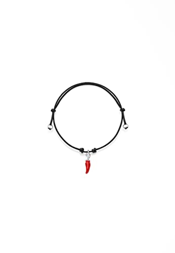 ️ BRACELET DESIGN E CHARM: Il mini bracciale con cordino in cotone cerato nero e mini charm Peperoncino Piccante è la combinazione perfetta tra piccante e magia! Ingrediente di buon auspicio, si narra che allontani la cattiva sorte e la sfortuna. Questo cornetto portafortuna è spesso usato come amuleto, inoltre il colore rosso è perfetto per chi ama farsi notare. Scopri la collezione dei ciondoli portafortuna, e componi il tuo bracciale unico e originale con i charms che preferisci.