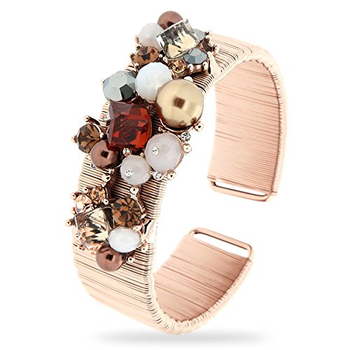 Emma Gioielli - Bracciale da Donna Rigido alla Schiava Placcato Oro con Perle e Cristalli SWAROVSKI ELEMENTS - Scatola Regalo