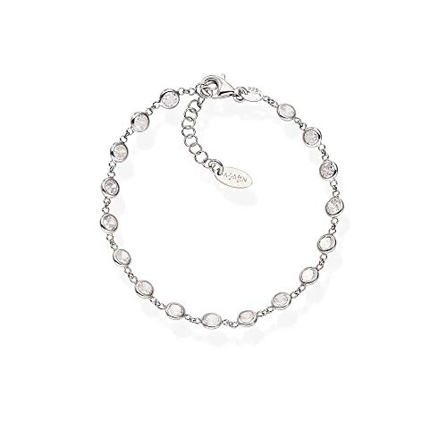 AMEN GIOIELLI Bracciale Gocce di Zirconi Bianchi in Argento BRGOBB3 Lunghezza di 16cm+3cm.