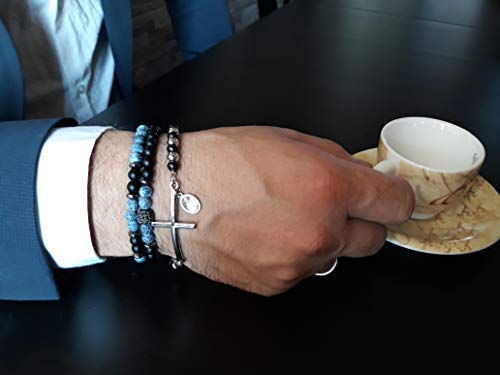 Saga gioielli bracciale rosario sfere croce acciaio unisex