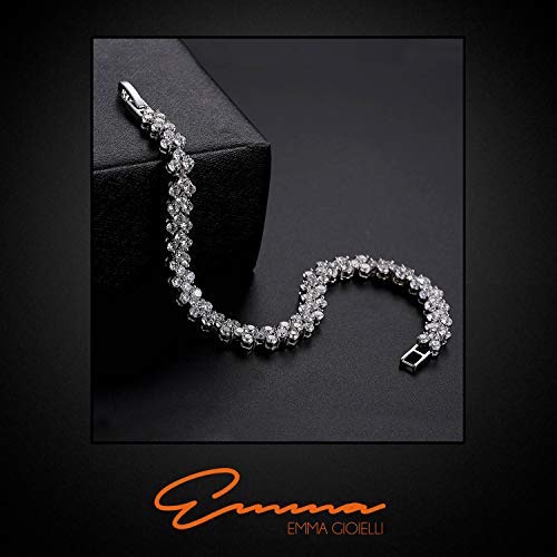 EMMA GIOIELLI - Bracciale Tennis Trilogy Cuore Pl Argento con Cristalli SWAROVSKI ELEMENTS - Confezione Regalo