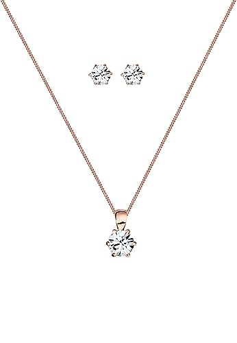Elli Set di Gioielli Donne Classico Ciondolo Solitario Set Orecchini a Perno con Cristalli in Argento Sterlino 925 Placcato Oro Rosa