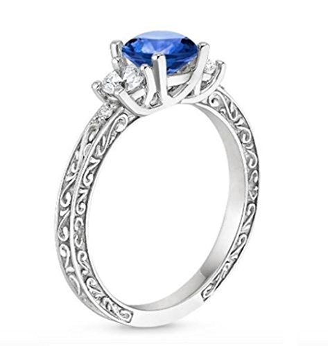 Lilu gioielli in filigrana Style 3 pietra rotonda zaffiro & anello di fidanzamento con zirconia cubica placcato platino bianco, Argento, 22, colore: White, cod. s-l500 (5)_