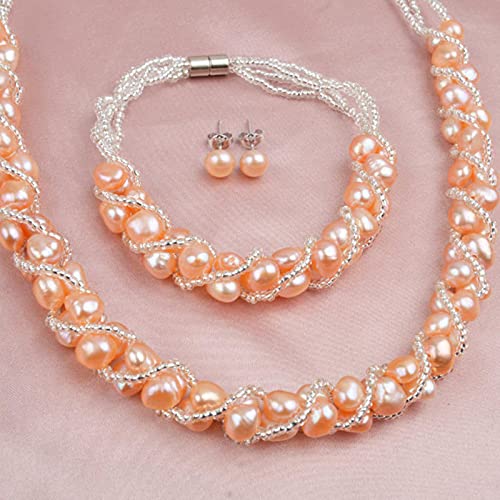 Set di Gioielli con Perle d'Acqua Dolce Naturali Bracciale Collana Lavorato A Mano Orecchini in Argento 925 per Donna