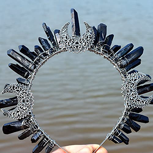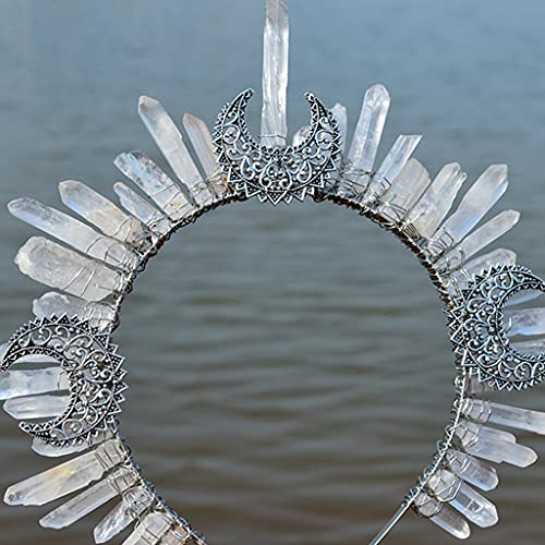 Gioielli di Quarzo di Cristallo Grezzo Tiara Fascia per Capelli con Corona di Luna Strega Guidata in Metallo