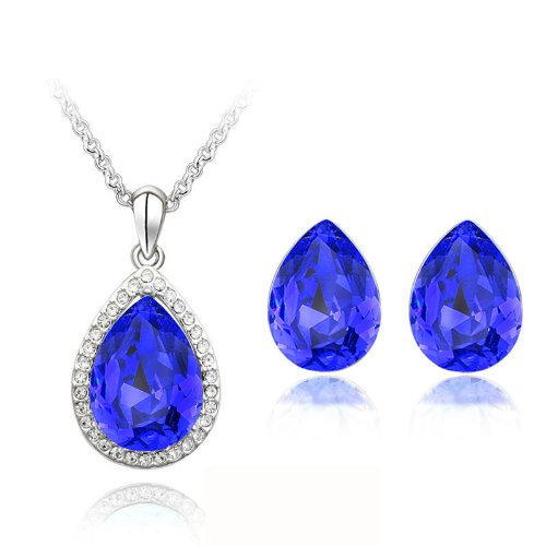 Gioielli alla moda, blu scuro cristallo orecchini a goccia e collana S332