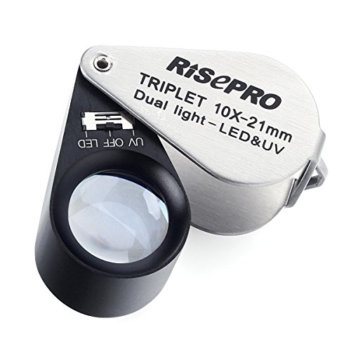 Gioiellieri, Risepro & reg 10 x ingrandimento Loupe Triplet Lens con 6 LED luce UV 21 mm MG7802 - 10 x