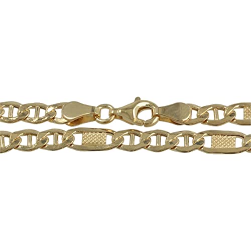 Gioiello Italiano - Bracciale traversino figaro da uomo in oro giallo 14kt, lunghezza 22cm, larghezza 5mm